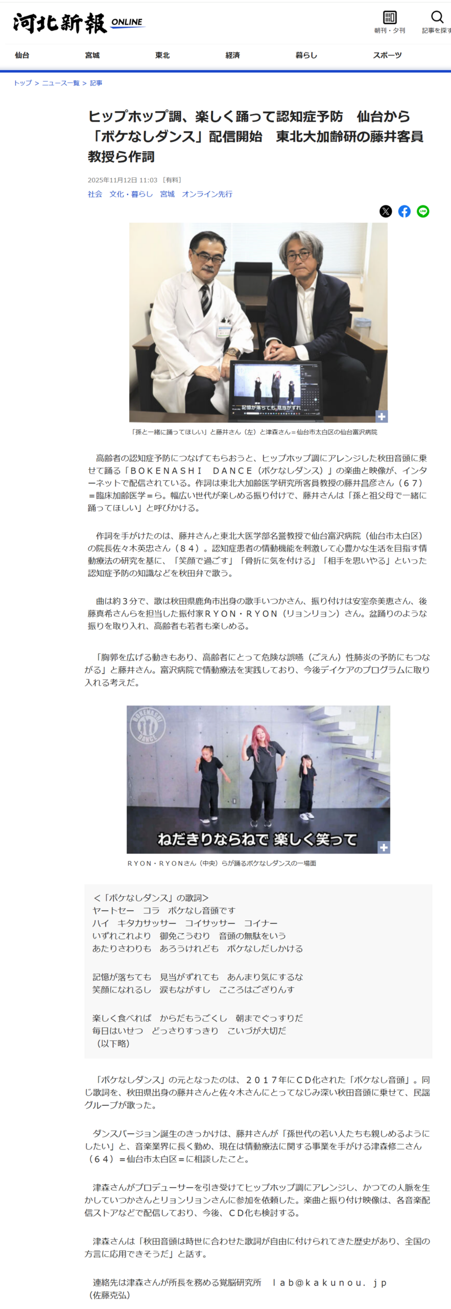 BOKENASHI DANCEが河北新報に掲載!